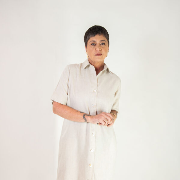 Vestido Branco feito em Linho Puro encorpado forrado em tecido 100% viscose. Possui bolsos e fendas bilaterais. A modelagem é autoral adaptada para mulheres maduras, com extremo conforto e caimento impecável. Confeccionado em tecido 100% linho. Fibra naturalmente sustentável, pois sua produção descarta o uso de agrotóxicos e utiliza nível […]