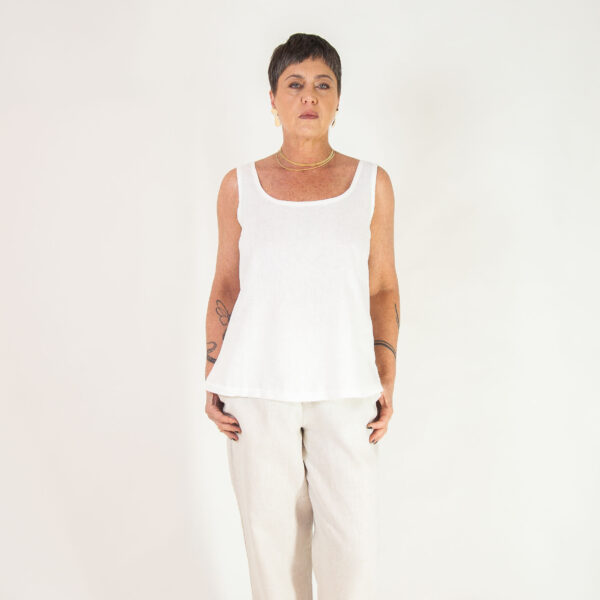 Regata feita em linho puro solta no corpo. Possui pequenas fendas nas laterais da barra. Confeccionada em tecido 100% linho. Fibra naturalmente sustentável, pois sua produção descarta o uso de agrotóxicos e utiliza nível baixo de água durante o plantio. Apresenta conforto térmico e durabilidade.