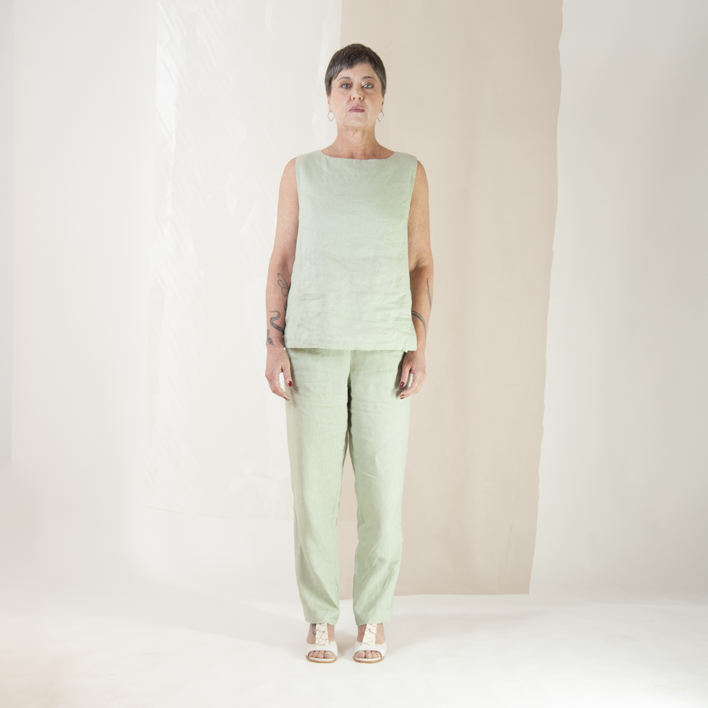 Confeccionada em tecido 100% linho. Fibra naturalmente sustentável, pois sua produção descarta o uso de agrotóxicos e utiliza nível baixo de água durante o plantio. Apresenta conforto térmico e durabilidade.